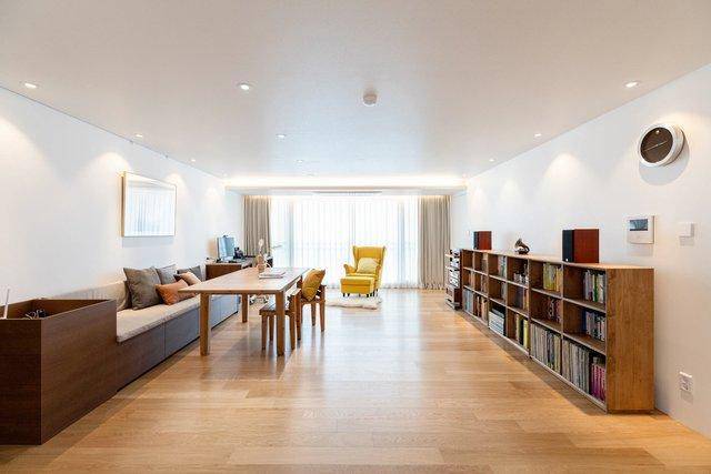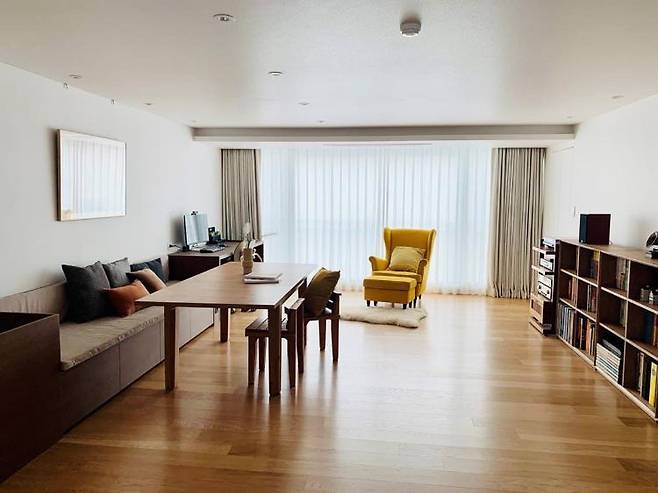 거실에 특히 신경을 많이 썼습니다. 저희는 거실에 TV를 두는 대신 큰 테이블을 두고 아이들 공부방 겸 온 가족의 휴식공간으로 쓰고 있어요. 이사한 집도 그런 구성으로 꾸미고 싶었습니다.