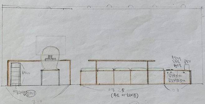 구석구석 이런 아이디어들이 가득하다 보니 인테리어 업체를 찾아가 상담할 때 부담스러워하시더라고요. 그러다 운이 좋게 마음에 맞는 인테리어 업체를 만나 저의 아이디어들을 현실화할 수 있게 되었습니다. 제 아이디어를 디자이너가 제작 가구로 만들어 줬고요,