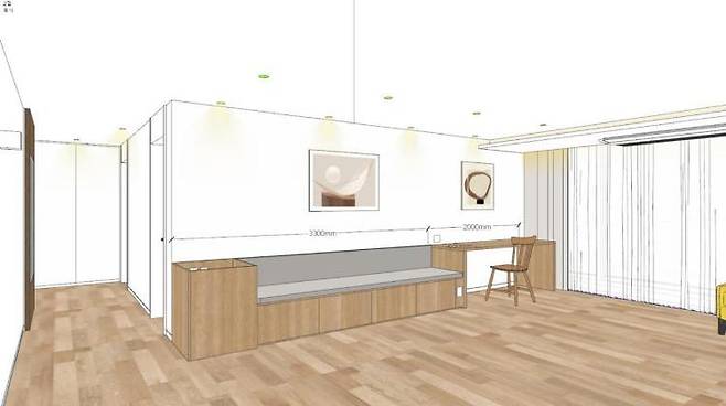 침대 맞은편은 붙박이 옷장이 있는 휴식공간으로 마무리했습니다.