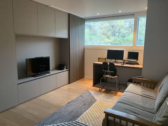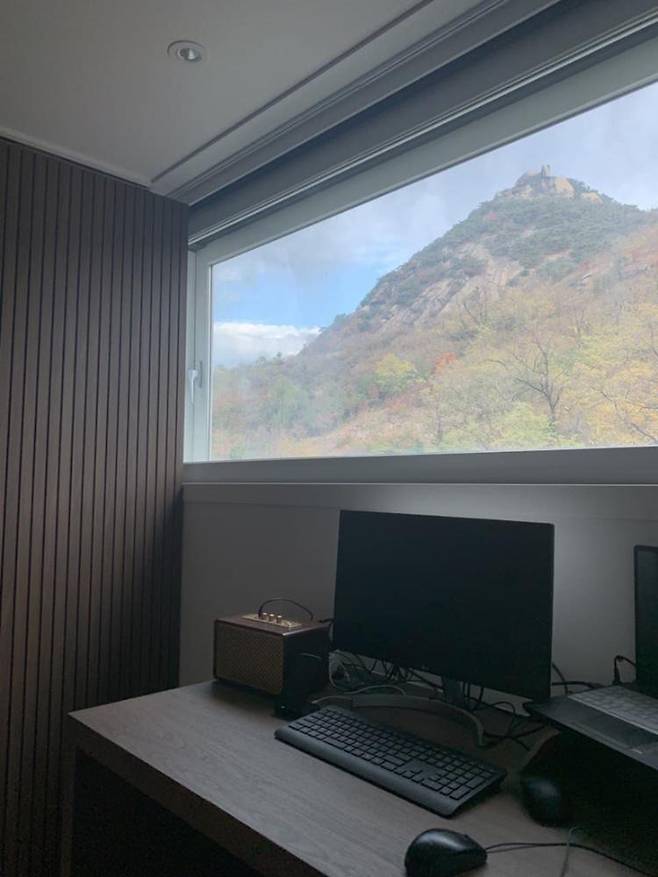 이 방의 매력은 바로 창문 밖으로 산이 멋지게 보인다는 것입니다. 책상에 앉아서 작업할 때마다 감탄하고 있습니다.