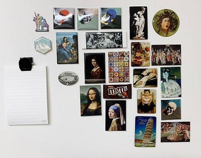 세계의 미술관에서 모은 예술 자석들을 붙여 놓고 메모도 붙이는 용도로 써요.
