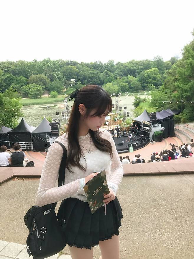 시원하고 가볍게, 동시에 큐티 + 힙 감성을 믹스한 룩으로 여름 음악 축제에 꼭 어울리는 조합이었어요.
