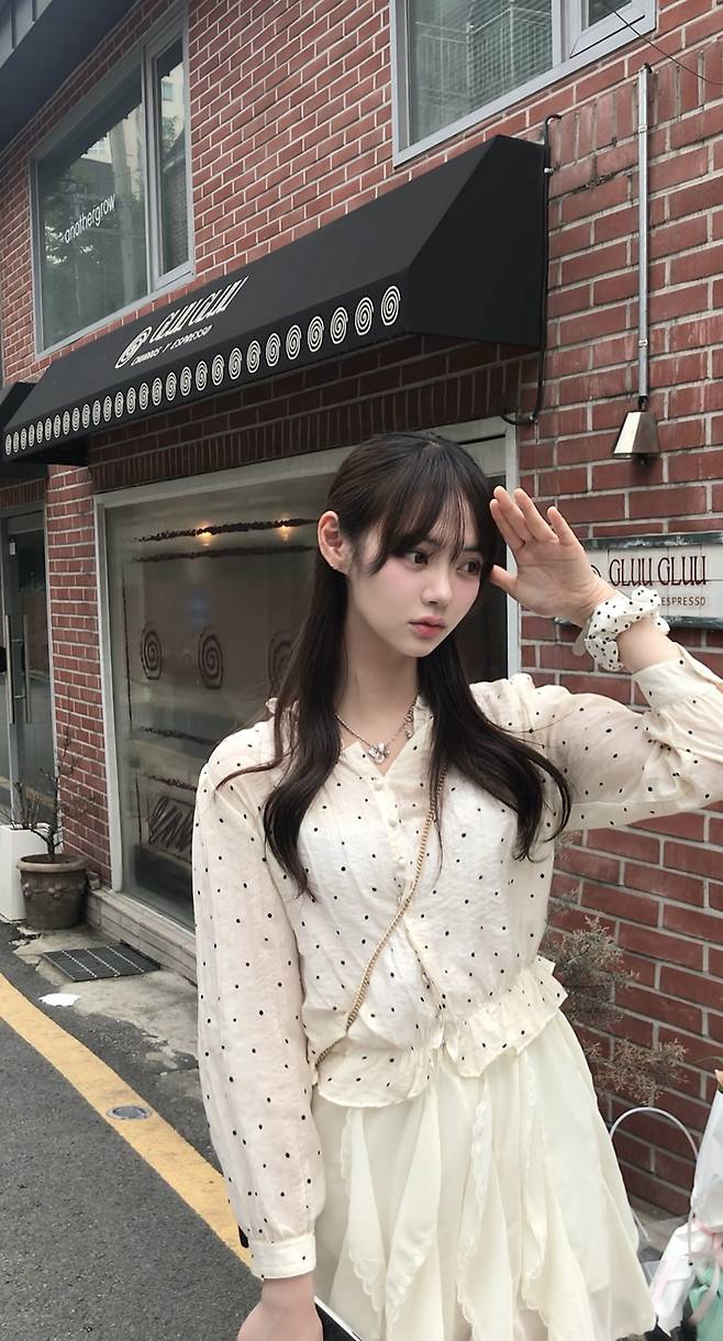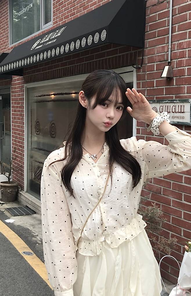 ⚪️ Look 1. 도트 포인트 블라우스 & 프릴 스커트