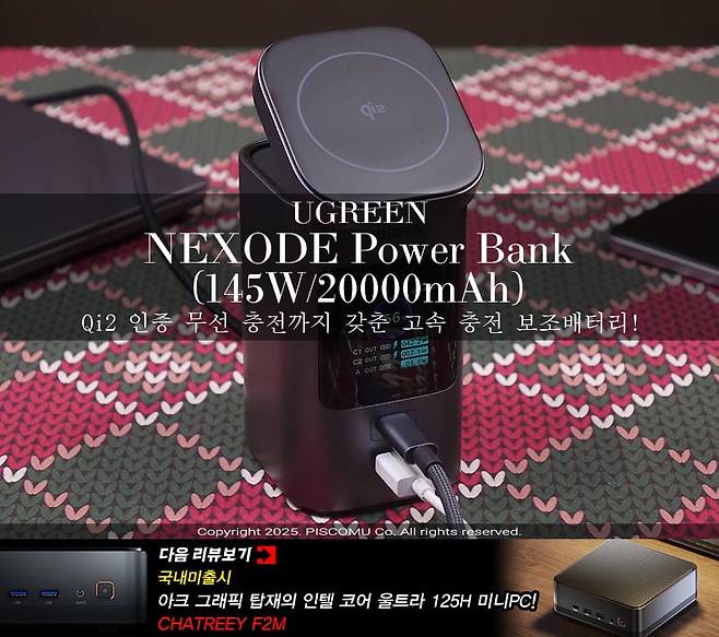 스마트폰 등장과 함께 크게 성장한 관련 제품 시장 중 하나가 바로 보조배터리 분야죠. 이제는 스마트폰뿐만 아니라 다양한 전자제품에서 USB 연결방식으로 충전 지원하는 제품들이 많아지면서 보조배터리는 필수템이자 다양한 용도로 사용되고 있습니다. 특히, 최근에는 유선이나 무선 모두 고속충전 지원을 하는 제품들이 나오고 있어서 보조배터리 역시 여기에 발맞춰 최신 규격 그러니깐 유선으로는 PD 3.0 규격, 무선으로 Qi2 규격을 적용하는 제품들이 나오기 시작했습니다. 국내 소비자들에게 보조배터리 브랜드로 잘 알려지고 인지도가 높은 유그린(UGREEN)에서도 최근 이 2가지 최신 규격을 적용한 보조배터리 제품이 나왔죠. 바로, Nexode 라인업의 최신 보조배터리 'Nexode 145W 20000mAh 파워뱅크' 제품입니다. 그럼, 한 번 만나보도록 하죠.