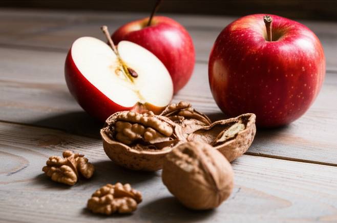 호두는 견과류 중에서도 비타민 E 함량이 가장 높아 다른 견과류보다 15배나 많은 비타민 E를 함유하고 있습니다. 반면, ‘비타민의 왕’이라고 불리는 사과는 항산화 작용과 에너지 보충에 탁월한 비타민 B와 C가 풍부합니다. 하지만 여기서 주목해야 할 점은, 비타민 보충에 좋다고 알려진 견과류와 사과를 함께 먹었을 때 속이 더부룩함을 느낀 적이 있으신가요? 이는 소화 속도 차이 때문입니다. 소화가 느린 견과류와 소화가 빠른 사과가 함께 섞이면 소화 과정에서 가스가 생성되어 속이 더부룩하고 소화불량을 유발할 수 있습니다. 따라서 호두와 사과는 함께 먹는 것보다 따로 섭취하는 것이 좋습니다.