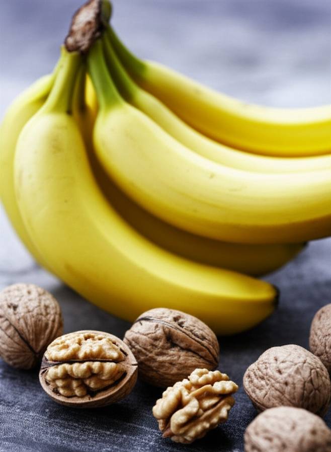 흥미롭게도 바나나의 칼륨은 몸에서 나트륨을 배출하는 데 도움이 되며, 혈관 청소 효과로 알려진 호두와 함께 섭취하면 놀라운 시너지 효과를 냅니다. 바나나의 마그네슘에는 또 다른 놀라운 효능이 있습니다. 우울증을 완화하고 행복감을 높일 수 있습니다. 이 효과는 호두와 매우 잘 어울립니다. 호두는 피로 회복에 탁월한 비타민 B가 풍부하고 호두의 프리바이오틱 섬유는 장내 미생물에 훌륭한 자극제 역할을 합니다. 이는 장 연동 운동에 도움이 되며 호두의 불포화지방산은 장과 뇌 사이에 연결된 신경 섬유를 자극하여 우울증 예방과 정신 건강 유지에 매우 중요합니다. 따라서 신체적, 정신적 건강상의 이점을 위해 바나나와 호두를 함께 섭취해 보십시오.