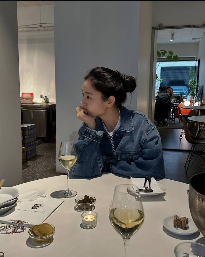 단정하게 묶은 번헤어와 맑은 민낯 스타일링은 패션의 포인트를 살리면서도 내추럴한 분위기를 유지했습니다.