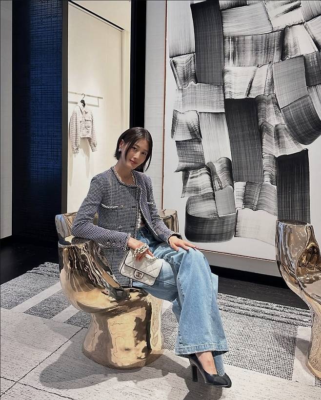 이현이는 클래식과 캐주얼을 절묘하게 믹스한 샤넬룩으로 감탄을 자아냈습니다.