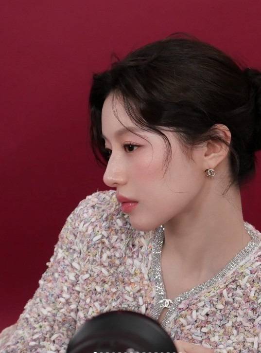 헤어는 깔끔하게 묶은 로우번에 잔머리로 여리여리한 분위기를 연출했고, 메이크업은 누드톤 베이스에 은은한 핑크 립과 블러셔로 깔끔하게 정돈. 샤넬 뷰티 특유의 세련미를 잘 살려줬다.