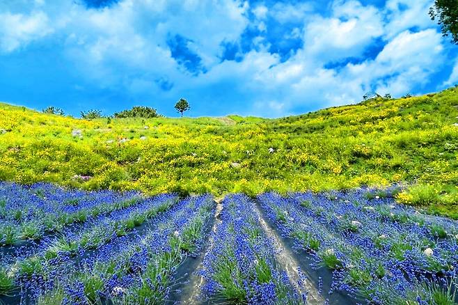 고요한 성터와 라벤더의 보랏빛 물결, 그리고 햇살에 반짝이는 금계국의 노란빛이 어우러져 사진으로 담아두고 싶은 장면이 곳곳에 펼쳐집니다.
