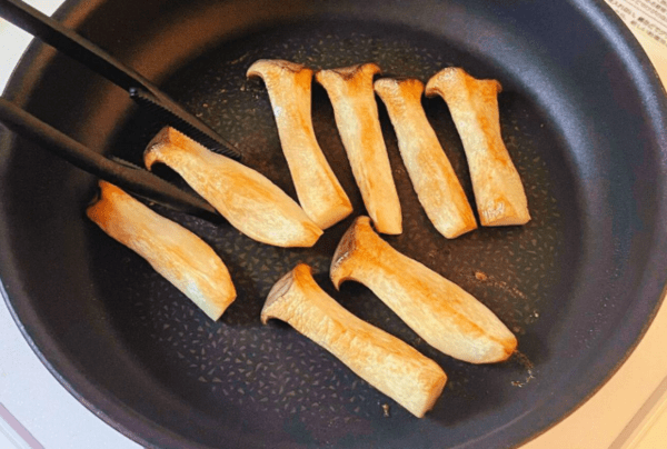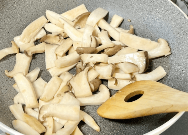 수분을 충분히 날리면 식감이 쫄깃해지고 양념이 잘 베어들 수 있는 바탕이 된다. 약한 불에서 천천히 볶으며 수분이 증발하도록 하면, 고기처럼 쫄깃한 식감에 가까운 새송이버섯으로 탈바꿈한다.
