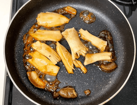 여기에 취향에 따라 케찹을 아주 소량 더해도 새콤한 감칠맛이 배가된다. 이 양념을 볶은 버섯에 넣고 중불에서 자작하게 졸이면, 고기조림 같은 풍미를 지닌 매콤 달큰한 볶음 요리로 완성된다.