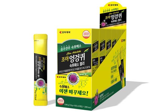 조아제약은 스틱형 젤리 타입 숙취해소제 ‘조아엉겅퀴 숙취해소 젤리’를 출시했다. 이 제품은 솜엉겅퀴(아티초크), 베타인, 마그네슘을 비롯한 각종 미네랄 등 다양한 생리 활성 물질들을 함유하고 있다. 주요 성분인 아티초크는 약용으로 사용되는 허브로, 알코올 분해 효과와 간장 보호 작용이 뛰어난 것으로 알려져 있다. 담즙 생성과 분비를 촉진해 소화 불량 해소에도 효과적이다. 약국에서 구매할 수 있다.