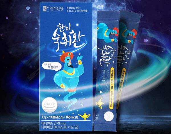한미양행은 알코올 분해를 위한 간 보호용 특허 물질을 함유한 ‘한미 숙취환 스틱’을 판매하고 있다. 숙취 해소에 도움을 줄 수 있는 나이아신, 피로를 풀 수 있는 비타민B1과 타우린, 알코올 분해를 돕는 아연, 이외에 건강함을 더할 식물혼합분말을 더해 완성한 제품이다. 스틱형으로 만들어져 있지만 젤리 제형은 아니고, 털어서 먹을 수 있는 환 형태의 숙취해소제가 담겨있다. 가격은 온라인 판매가 기준 포당 1,200원 정도로 거래되고 있다.