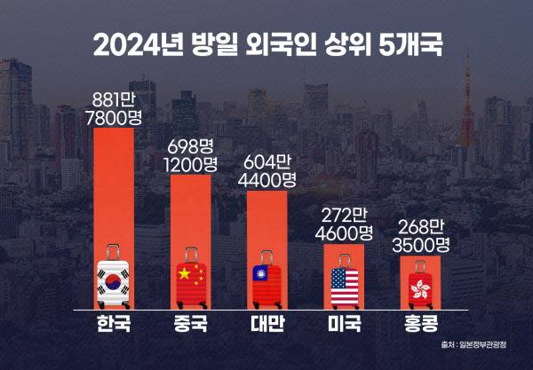 호텔 숙박료 폭등에는 한국인들의 못 말리는 일본 관광열풍이 한몫하고 있다. 작년 일본을 찾은 외국 관광객은 3686만 9900명으로, 전년 대비 47.1% 증가했다. 이 중 한국인 방문객은 882만 명으로, 국가별 방문객 집계에서 압도적 1위이다. 중국인은698만명으로 한국보다 184만명이 적다. 한때 한일 관계가 악화되면서 노재팬(No Japan) 운동까지 벌어졌지만, 한일 관계가 풀리고 엔저까지 겹치면서 일본을 찾는 한국인들이 급증하고 있다.