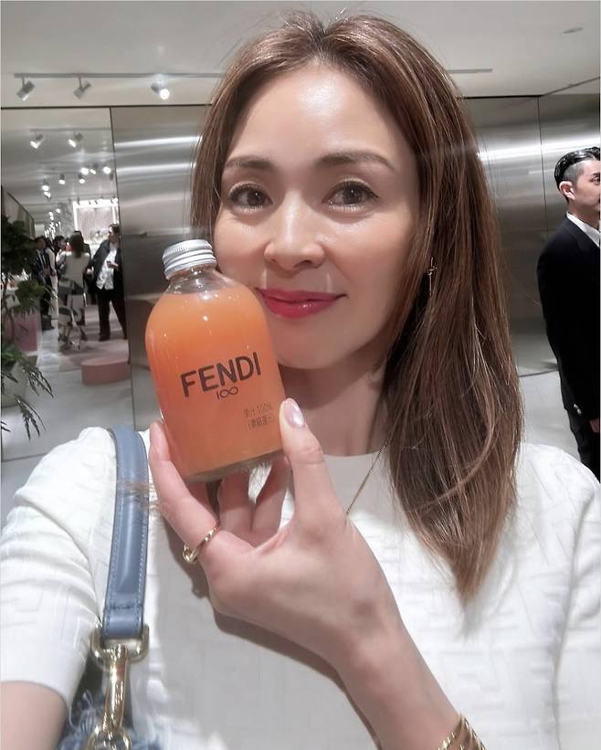 특히 연한 골드 주얼리와 연청 블루 컬러 숄더백을 포인트로 들어 전체 룩에 여유로운 엣지를 살렸고, 여기에 자연스럽게 떨어지는 부드러운 헤어스타일이 야노시호 특유의 세련미를 극대화했습니다.