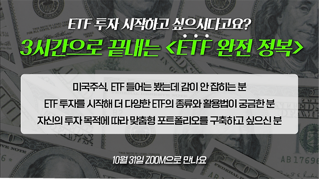 머니네버슬립과 함께하는 ETF 입문반에서 3시간만에 기초부터 유형별 ETF 분석까지 싹! 끝내드립니다!