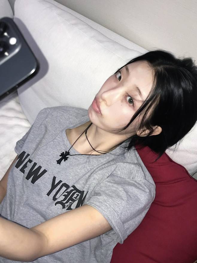 특히 가운데 가르마에서 떨어지는 얇은 앞머리 잔가닥들은 얼굴을 부드럽게 감싸며, 특유의 몽환적인 시선을 더욱 강조해주고 있었어요.