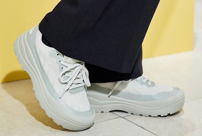 낄창은 너무 푹신해도 안 좋습니다. 무게중심이 잡히지 않아 금세 피로해지는 탓이죠. 그렇다고 너무 딱딱하게 만들면 발이 아픕니다. 적당한 착화감이라는 난제는 ‘실리콘’으로 풀었습니다. 신발을 신으면 땅을 밟는 느낌이 아니라 말랑한 실리콘 위를 걷는 느낌이 납니다.