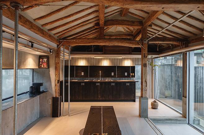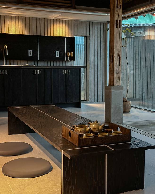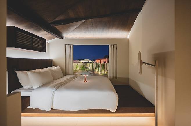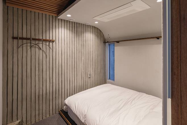 단차의 가장 특별한 점은 한옥의 형태와 노출 콘크리트 공법을 조화롭게 결합했다는 것입니다. 러프한 질감의 콘크리트가 주는 단단하고 현대적인 느낌과 한옥의 유려한 곡선이 만나 기존 한옥 스테이와는 완전히 다른 낯선 분위기를 연출합니다.