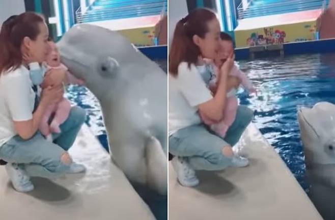 아니 글쎄 아기가 덩치가 큰 돌고래가 무서웠는지