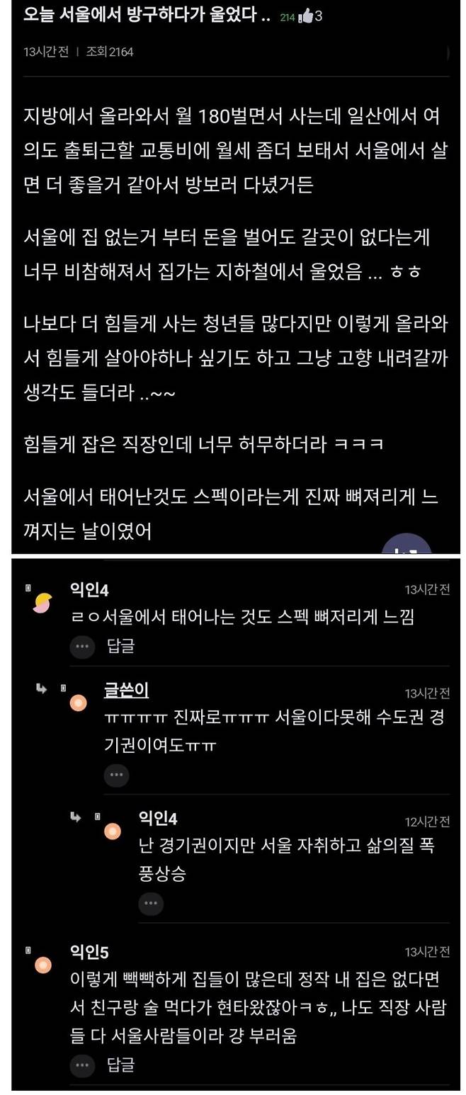 많은 사람들이 서울에서 집 구하다가 현타 많이 온다고 하네요