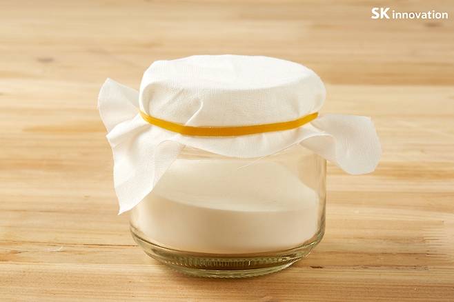 2. 여기에 백식초 1큰술을 천천히 부어주세요 (부글부글 거품이 나는 게 정상이에요!)