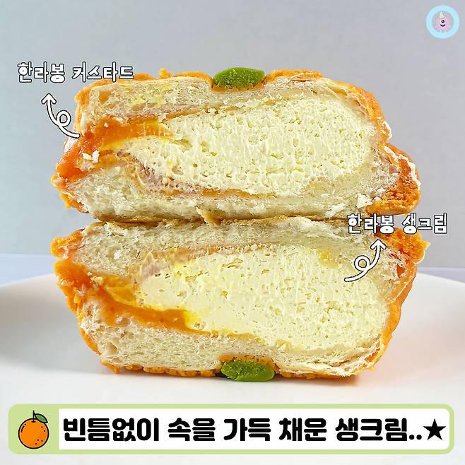 소보로 빵 안은 한라봉 생크림과 한라봉 커스터드가 가득 채우고 있어요!