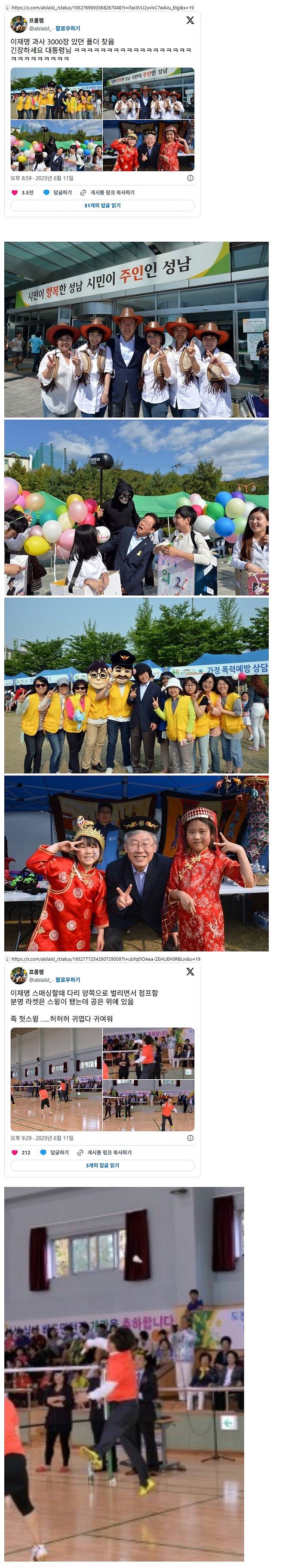 네티즌들은 “이거 자료집으로 내도 되겠다”, “정치인 공식 사진보다 이런 게 더 친근하다”, “대통령님 긴장하세요 ㅋㅋ”라며 유쾌한 반응을 쏟아냈다.