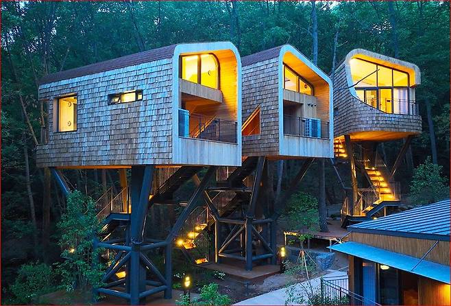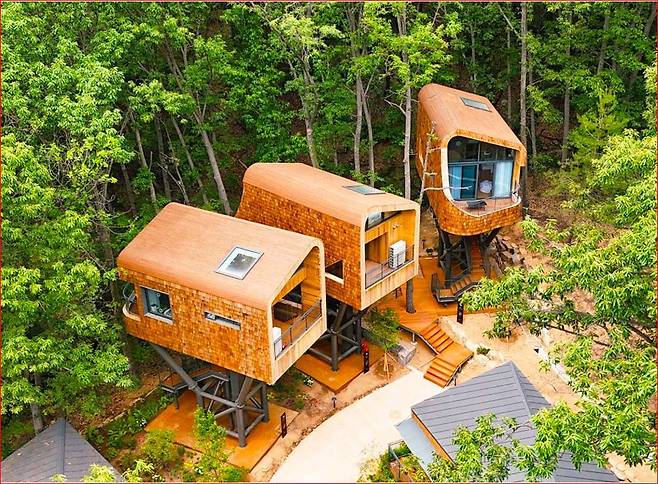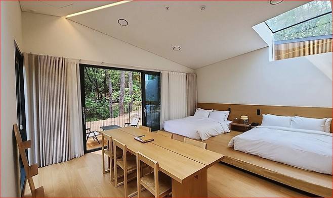 수락 휴가 ‘숲 속 호텔’이라고 불리는 이유는 객실의 완성도 때문입니다.