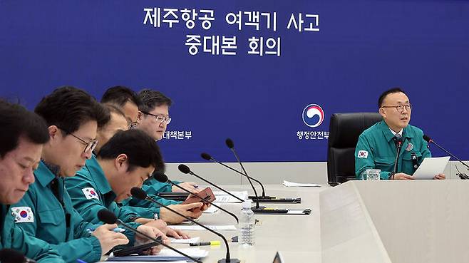 ▲ 행정안전부 이한경 재난안전관리본부장이 13일 오전 정부세종청사 중앙재난안전상황실에서 열린 제주항공 여객기 사고 중대본 제17차 회의를 주재하고 있다.