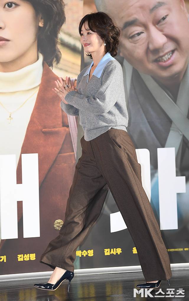 배우 김성령이 12일 오전 서울 광진구 롯데시네마 건대입구에서 열린 코미디 영화 ‘대가족’ 제작보고회에 참석했습니다.