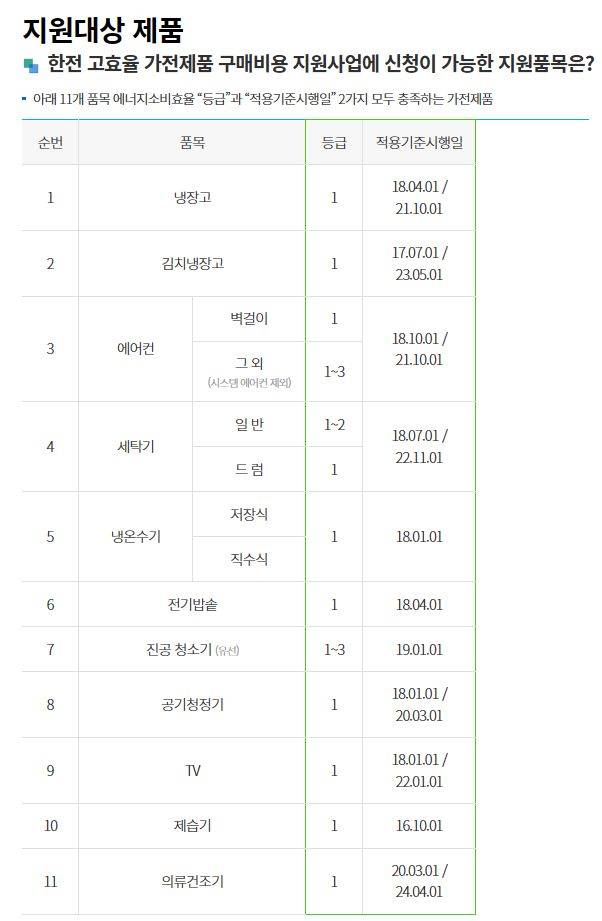 첫 번째 방법, 한전 고효율 가전제품 구매비용 지원사업