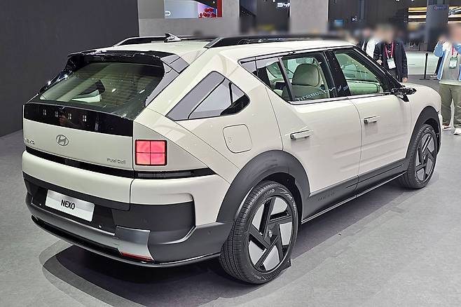 신형 넥쏘는 지난해 공개된 이니시움 콘셉트카의 디자인을 그대로 옮긴 모델로, 철이라는 소재의 본질을 담아낸 '아트 오브 스틸'이 핵심이다. 표면은 군더더기 없이 단순하면서도 강렬한 조형감으로 다듬어졌고, 측면부 아치는 직선과 아치형 라인을 조합해 시각적 긴장감을 자아낸다. 이러한 디자인은 SUV의 강인한 이미지를 살리면서도 독특한 미래지향적 감성을 동시에 전달한다.
