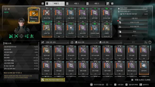 그리고 저 세팅에서 혹시라도 생존이 버겁다면 체력을 늘려주는 ‘체력 증대’나 ‘체력 증폭’ 모듈을 사용할 것을 적극 권장한다.