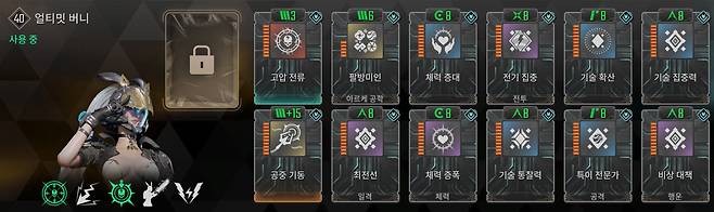■ 얼티밋 버니 (천둥우리 / 찌릿한 특이점 반응로 / 스킬 치배 및 스킬 재감) ■ 이네즈(비밀정원 / 찌릿한 역한 반응로 / 스킬 치배 및 스킬 재감) ■ 헤일리(잔탄량 12% 옵션이 붙은 관통하는 빛 / 얼어붙은 특이점 반응로 / 스킬 치배 및 거신 추가 공격력)