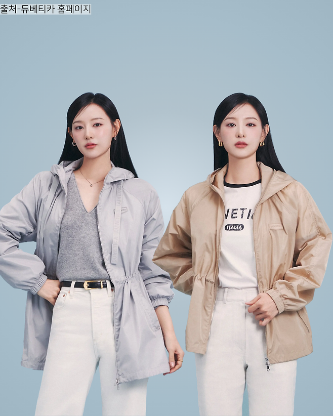 듀베티카의 뮤트한 블루 색상의 아우터와