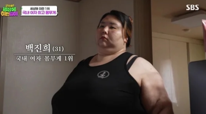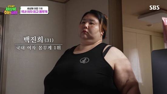 백진희 씨는 체중계 위에 올라가며 “일반 체중계로는 내 몸무게를 잴 수가 없다”며