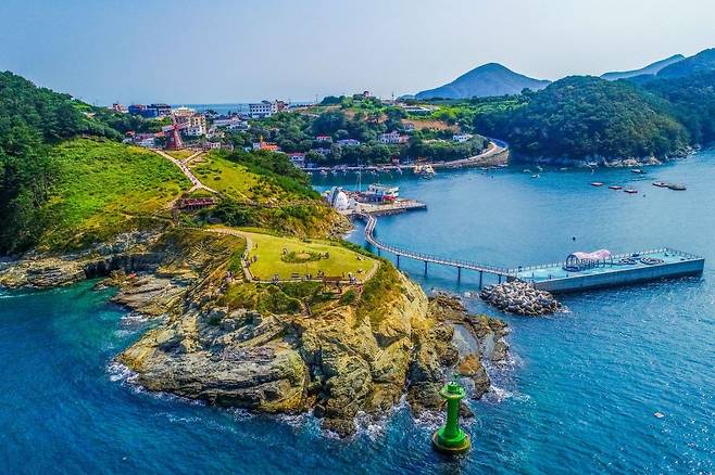 저구리에 위치한 저구항은 수국 동산이 있어 바다와 함께 수국을 보기 좋은 명소입니다. 야생 수국이 아닌 동산으로 조성이 되어 있으며, 데크길과 산책로, 지압길 등이 잘 꾸며져 있는데요.