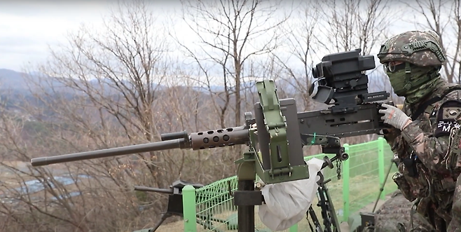 이 무기는 미국 브라우닝 M2(.50구경 중기관총)를 모델로 한 국내 설계로, 12.7×99mm NATO 탄약, 분당 450~600발 사격속도, 무게 약 38kg, 최대 유효 사거리 약 1,830m, 최대 사거리 약 6,765m의 성능을 자랑합니다. 주요 장갑차, 함정, 차량등에도 광범위하게 탑재돼 있으며, 광범위한 표적 대응능력을 갖춘 국산 중무장 체계입니다.