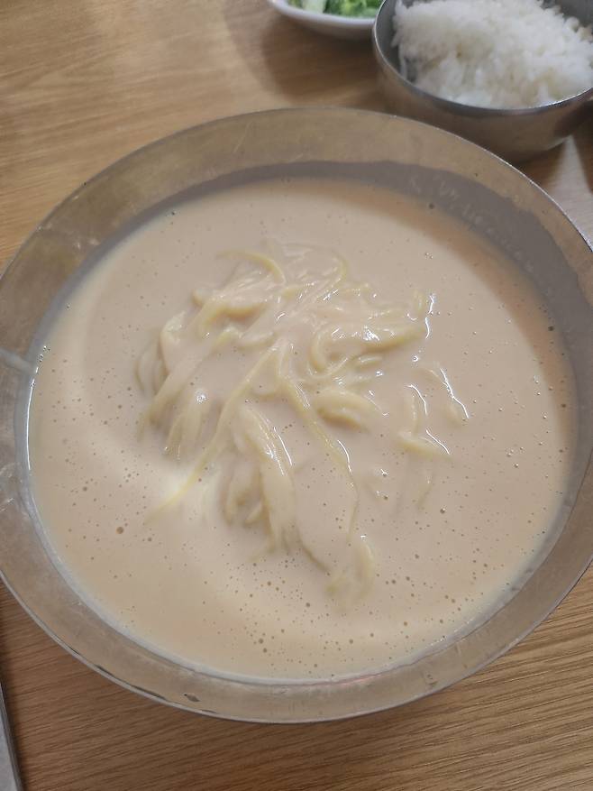 콩국수의 콩국은 간이 되어서 나오기 때문에 따로 소금은 필요 없는 맛이예요. 콩국은 진~~~하고 꾸덕+부드럽 습니다. 콩국만 따로 리필 하고 싶었는데 그렇게는 안된다고 하셨어요. 하지만 저희의 눈빛이 간절했는지 콩국을 따로 조금 가져다주시는 친절함!! 감동이었습니다.