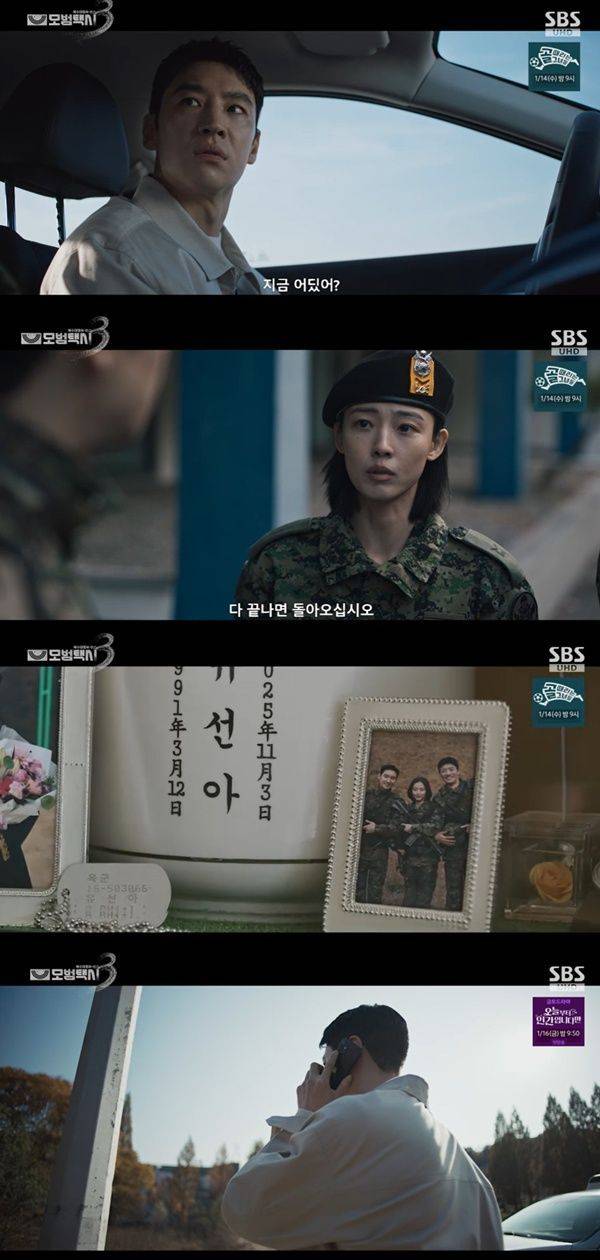 '모범택시3' 이제훈이 택시를 버리고 군 부대로 복귀했다.