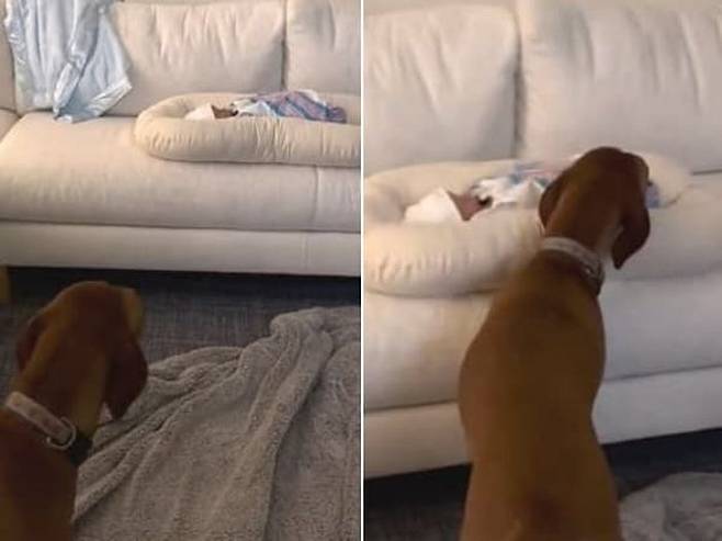 사연은 이렇습니다. SNS상에는 태어난지 얼마 안된 아기와 처음 얼굴을 마주하게 된 강아지가 보인 반응이 담긴 영상이 올라온 것.