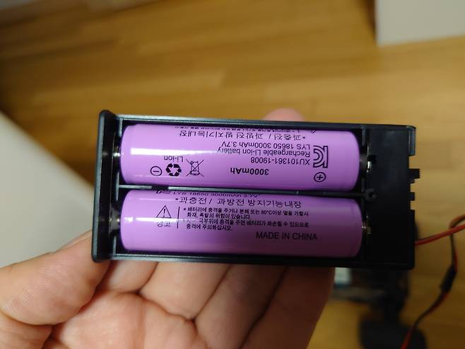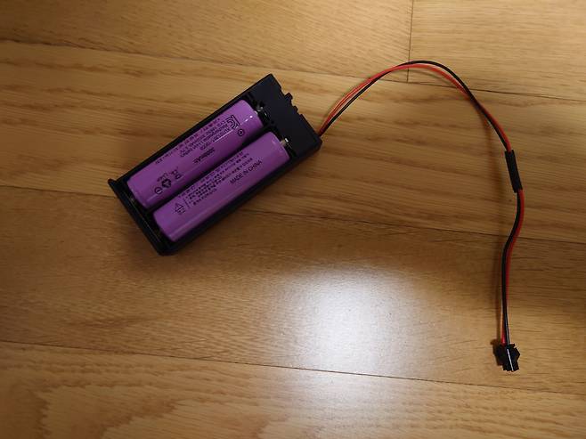그래서 알리에서 아래 3번째 사진의 18650 베터리 케이스를 구매한후 집에 손전등에 사용중인 3.7V 18650리튬 배터리 2개씩 넣고 커넥터를 연결하여 7.4V 리튬베터리팩(3번째 사진)을 2세트를 만들었습니다.