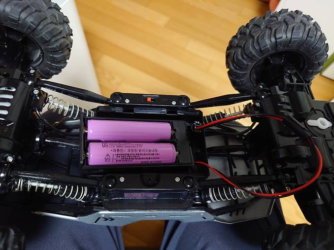 그런데 18650 베터리 팩 연결하면 조종기 무선 연결도 안되고 전혀 작동을 안 합니다.