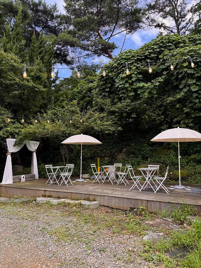• 창문 너머로 보이는 숲, 나무 향 가득한 테라스,탁 트인 야외 공간까지 어느 자리에서든 자연과 맞닿은 힐링을 느낄 수 있어요.