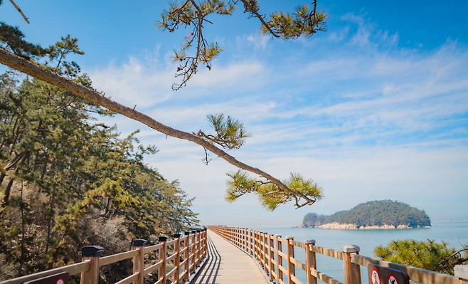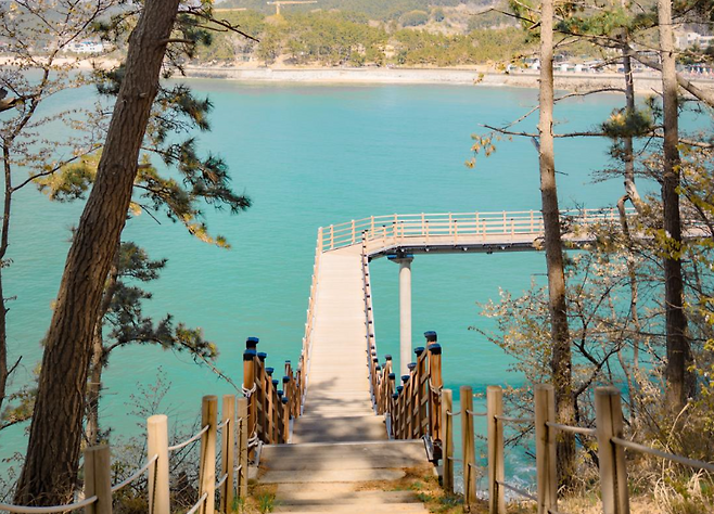 🌲 울창한 송림과 에메랄드 바다의 조화소나무 숲 사이로 난 산책로를 걷다 보면 어느새 바다 한가운데 서 있는 기분을 느낄 수 있어요. 특히 해상 인도교를 건널 때의 그 시원함은 정말 최고!