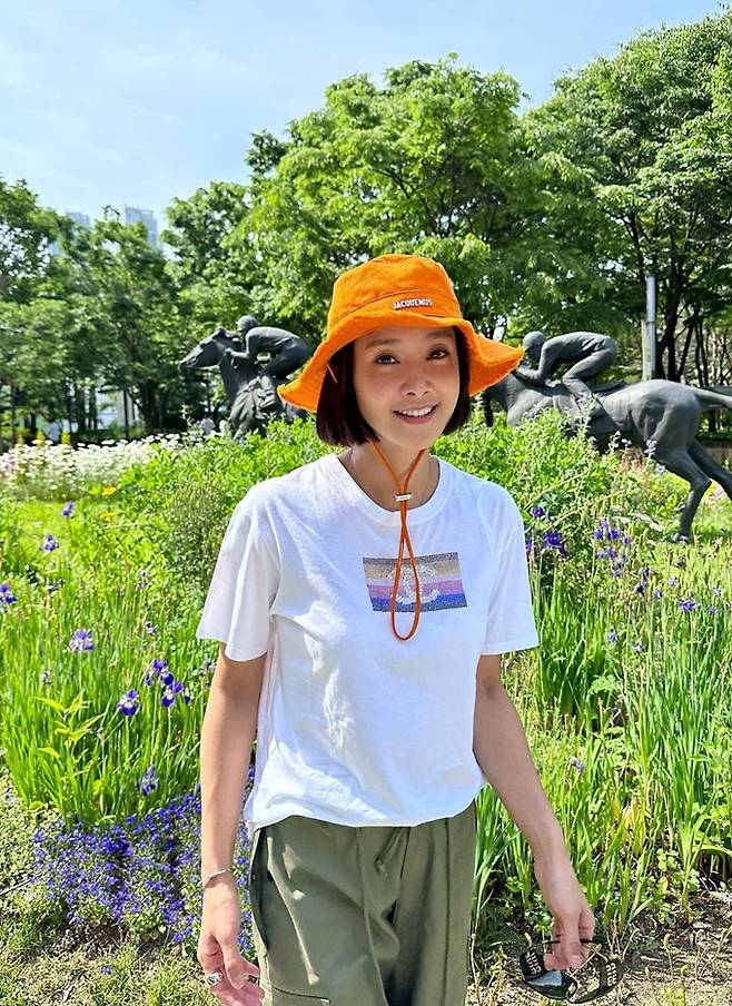 배우 이시영이 10대 같은 잼버리룩으로 서울숲 나들이를 즐겼다.