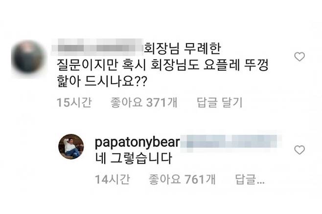 한편 대기업 총수인 SK그룹 최태원 회장 역시 과거 요플레 뚜껑에 묻은 음식을 먹는다는 사실을 알려 화제가 되기도 했다. 과거 한 네티즌은 최태원 회장의 개인 사회관계망서비스(SNS)인 인스타그램에 “회장님, 무례한 질문이지만 혹시 회장님도 요플레 뚜껑 핥아 드시나요?”라는 질문을 남겼다. 이에 대해 최태원 회장은 “네 그렇습니다”라는 답변을 남기며 친근한 행보를 보였다.