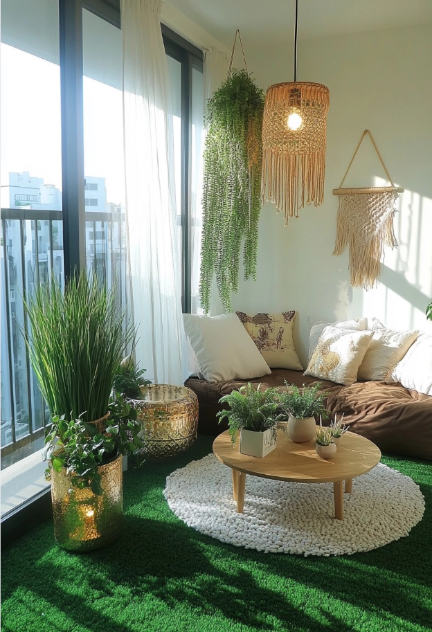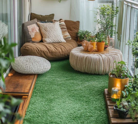 베란다 바닥은 공간의 인상을 결정짓는 중요한 요소입니다. 따뜻한 우드타일은 차분하고 아늑한 느낌을 주고, 인조잔디는 야외 캠핑의 감성을 담아냅니다. 두 가지를 섞어 배치하면 더욱 입체적인 분위기를 연출할 수 있어요. 방수성과 실용성까지 고려하면 오래도록 만족할 수 있습니다.